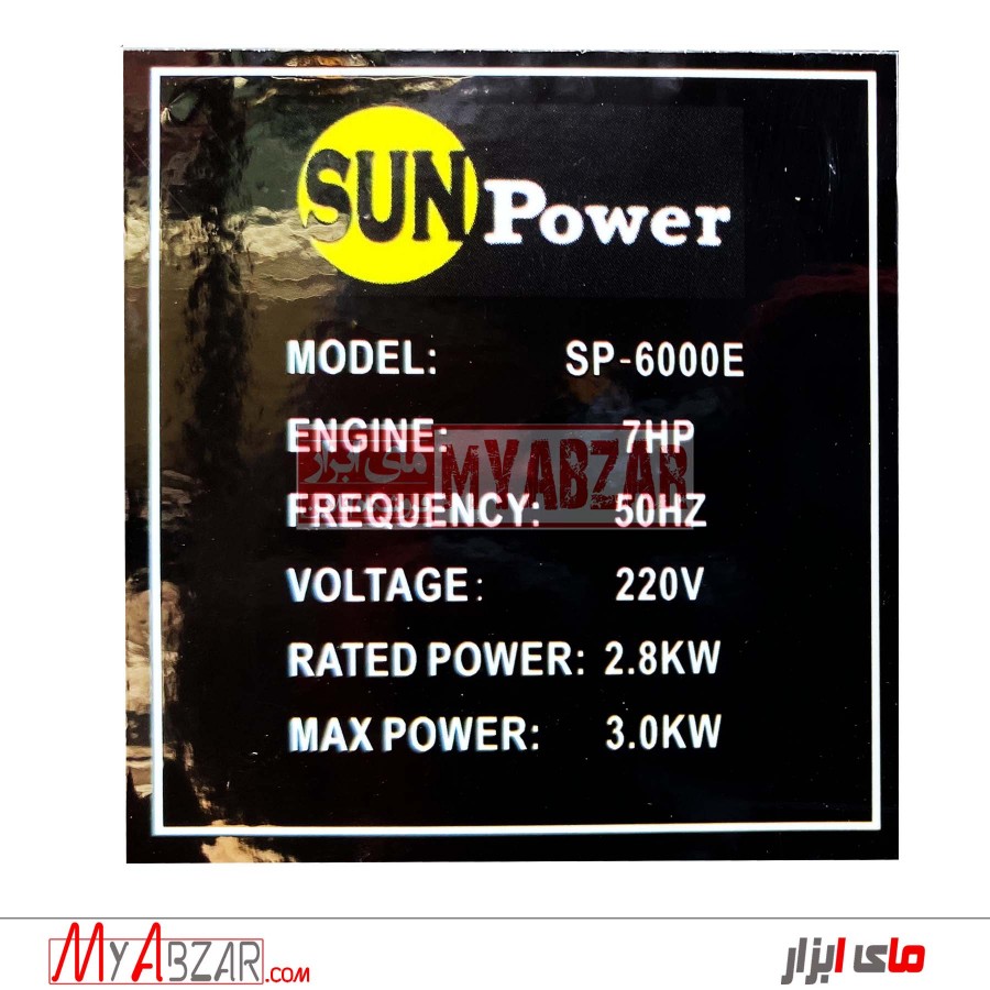 برند | موتور برق 3 کیلووات سان پاور استارتی مدل SP-6000E |