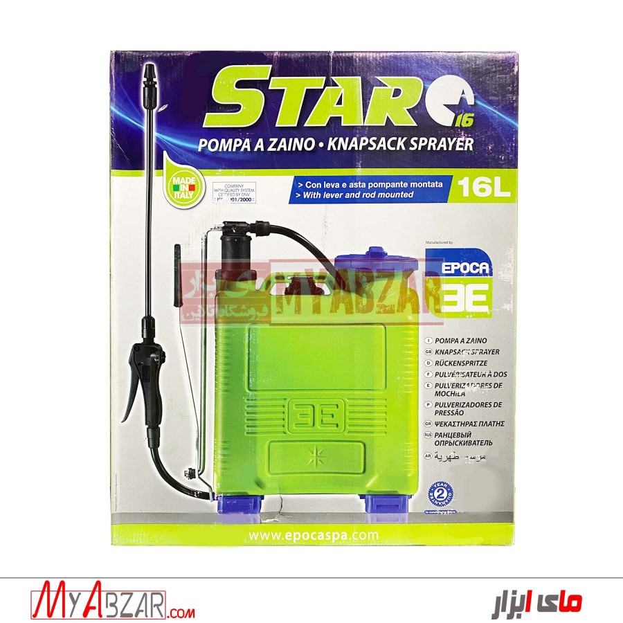 یکی از مشکلاتی که باغبانان و کشاورزان با آن روبرو هستند آفت های موجود برای گیاهان و محصولات گیاهی می باشد،که با استفاده از سموم تولید شده آنها را از بین می برند.اما برای این کار نیاز به سم پاش است.سمپاش ها در سایز ها و طرح های مختلف ساخته شده اند. سمپاش 16 لیتری اپوکا مدل استار یکی از سمپاش های موجود در بازار با ظرفیت 16 لیتری می باشد این سمپاش ترکیبی از کیفیت و طراحی ایتالیایی می باشد. این سمپاش دارای لانس ، نازل ، و یک سوئیچ ارگونومیک است که مناسب استفاده در شرایط مختلف است، مواد اولیه استفاده شده در این محصول از پلی پروپیلن با درجه کیفی بالایی که در برابر مواد شیمیایی واکنش نشان ندهد و این امر باعث افزایش طول عمر سمپاش و مقاومت و استحکام بالا می شود. دارای پاشش 750 سانتی متر در فشار 2.5 بار در حالت عمودی و برای حالت افقی 850 سانتی متر در فشار 2.5 بار می باشد وزن این محصول 3550 گرم است. این محصول ساخت کشور ایتالیا است.