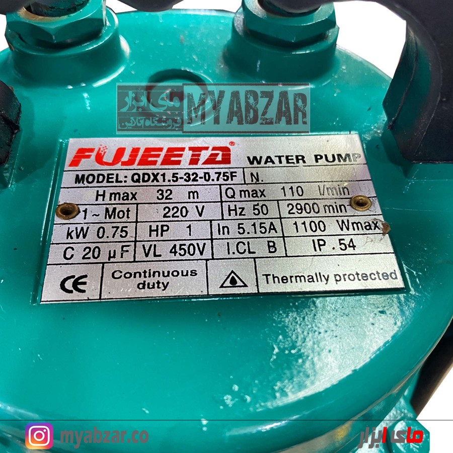 پمپ کفکش 32 متری 1 اینچ فوجیتا مدل QDX1.5-32-0.75F مناسب چاه های اب صاف و متراژ 15 الی 28 متر میباشد.