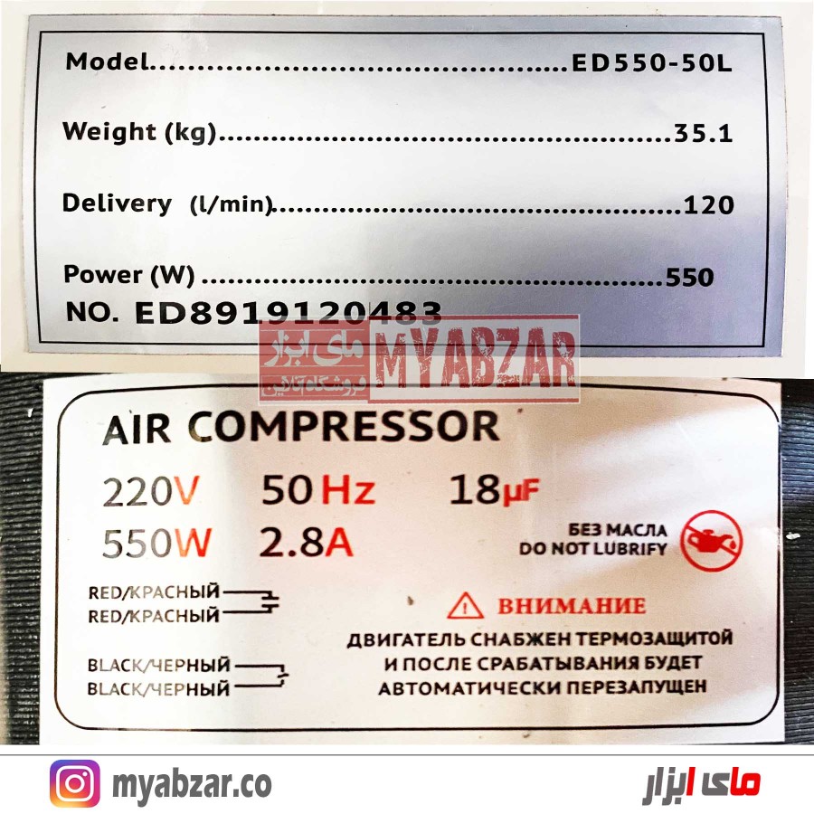 مشخصات کلی کمپرسور باد ادون 50 لیتری سایلنت مدل ED550-50L