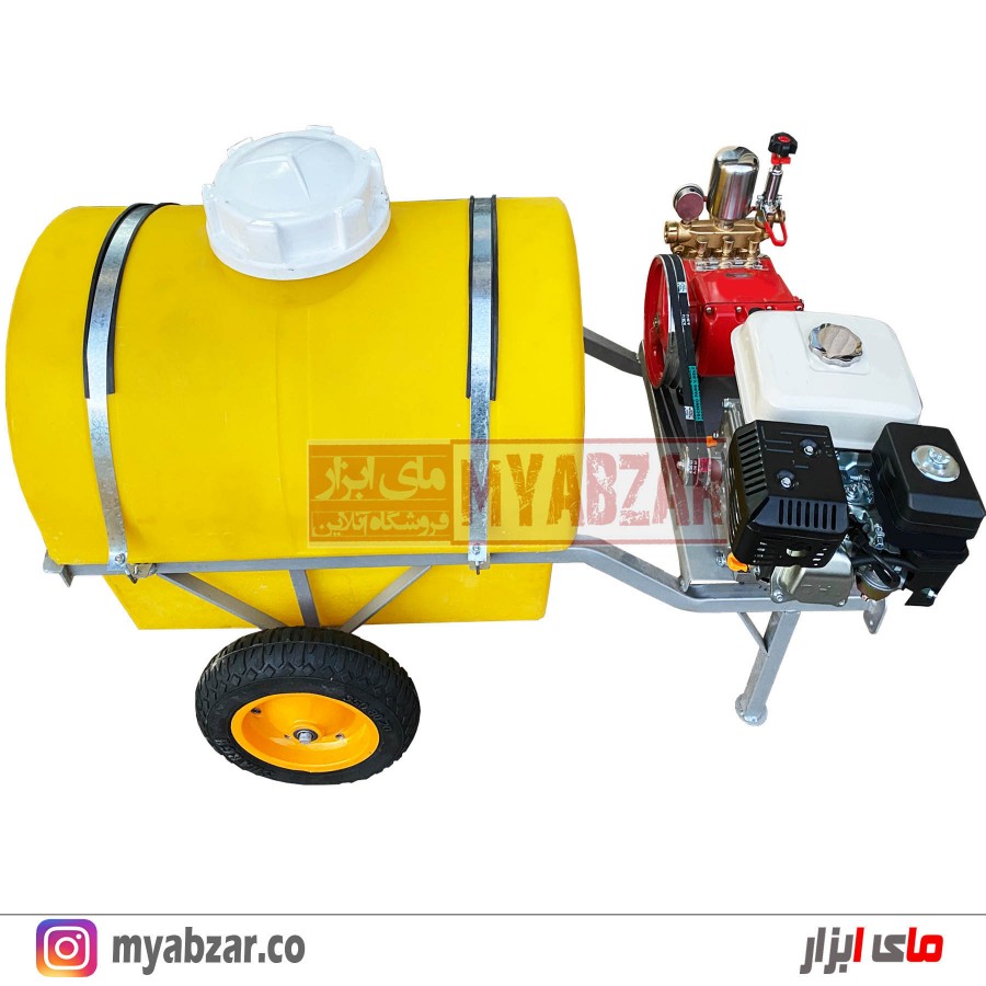 این سمپاش نیز مشابه سمپاش زنبه ای، بیشتر برای باغها مورد استفاده قرار میگیرد. با این تفاوت که چرخ و مخزن ثابت دارد.برای ایجاد برد بیشتر، از نظر طول شیلنگ های خروجی و تأمین فشار مناسب در لانس های آنتنی (از جمله سمپاشی نخیلات)، با نصب موتور و پمپ قوی تر بر روی آن، میتوان به این هدف رسید.