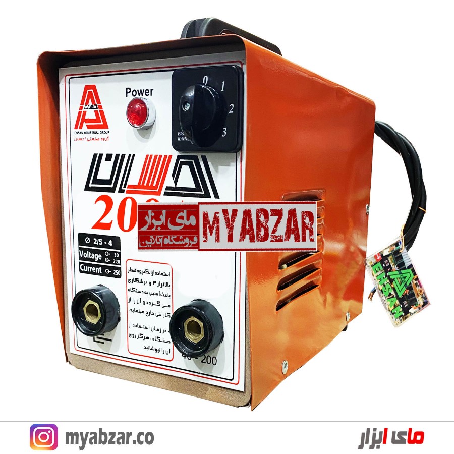 یکی از تولیدات گروه صنعتی احسان است که براساس تکنولوژی رکتیفایری تولید شده و برای اتصال اهن با جوش یکنواخت و مستحکم مناسب است. یکی از معضلات دستگاهای جوش تولید گرما است.این محصول برای غلبه بر این مشکل از سیستم خنک کننده شامل فن در قسمت پشتی دستگاه و شبکه ی جابجا کننده ی هوا در قسمت جانبی بهره میبرد.مجموعه ی این شبکه ی خنک کننده و مداومت عملکرد فن باعث شده تا دستگاه عملکرد مناسبی در برابر گرم شدن داشته باشد. بدنه ی دستگاه از ورق با برش سی ان سی تولید شده که به یک شاسی سرتاسری و یک شاسی میانی در زیر بدنه متصل است تا هم از لرزش و ایجاد صدا جلوگیری کند و هم از هسته ی داخلی ان بخوبی مراقبت کند. بدنه از بیرون و داخل با رنگ استاتیک با ماندگاری بالا پوشیده شده که با توجه به مرطوب بودن محیطهای کارگاهی و ساختمانی این پوشش باعث عمر بالای دستگاه و هسته ی داخلی آن و جلوگیری از خوردگی و زنگ زدگی در دراز مدت میشود.دستگاهای رکتیفایری با مشکل چسبندگی مواجه نمیشوند و بر اساس نظر کارشناسان جوشکاری جوش مستحکم و یکنواخت تری نسبت به اینورترهای مشابه دارند. مجموعه تولیدات احسان دستگاهایی ایرانی هستند که از بابت تامین قطعات و تعمیر در صورت نیاز به مشکلی بر نمیخورید. با توجه به آمپر محاسبه شده ی دستگاه و تست های انجام شده در شرایط مختلف دستگاه به راحتی با برق تک فاز کار میکند ونوسان مصرف دستگاه با کار مداوم بسیار محدود و قابل چشم پوشی است. واحد کنترل کیفیت در انتهای فرایند تولید کلیه ی قطعات و اتصالات برقی را تست میکنند تا از سالم بودن دستگاه مطمئن شوند.دستگاه از نظر آمپر و وات مورد نیاز نیز تست میشود تا مغایرت و مشکلی و جود نداشته باشد. دستگاه به گونه ای طراحی شده تا علاوه بر داشتن ظاهری زیبا به راحتی قابل حمل باشد. یک چراغ نشانگر روشن و خاموش بودن، برای سهولت کار با دستگاه در جلوی آن قرار داده شده است.ویژگی های ترانس جوشکاری احسان 200A