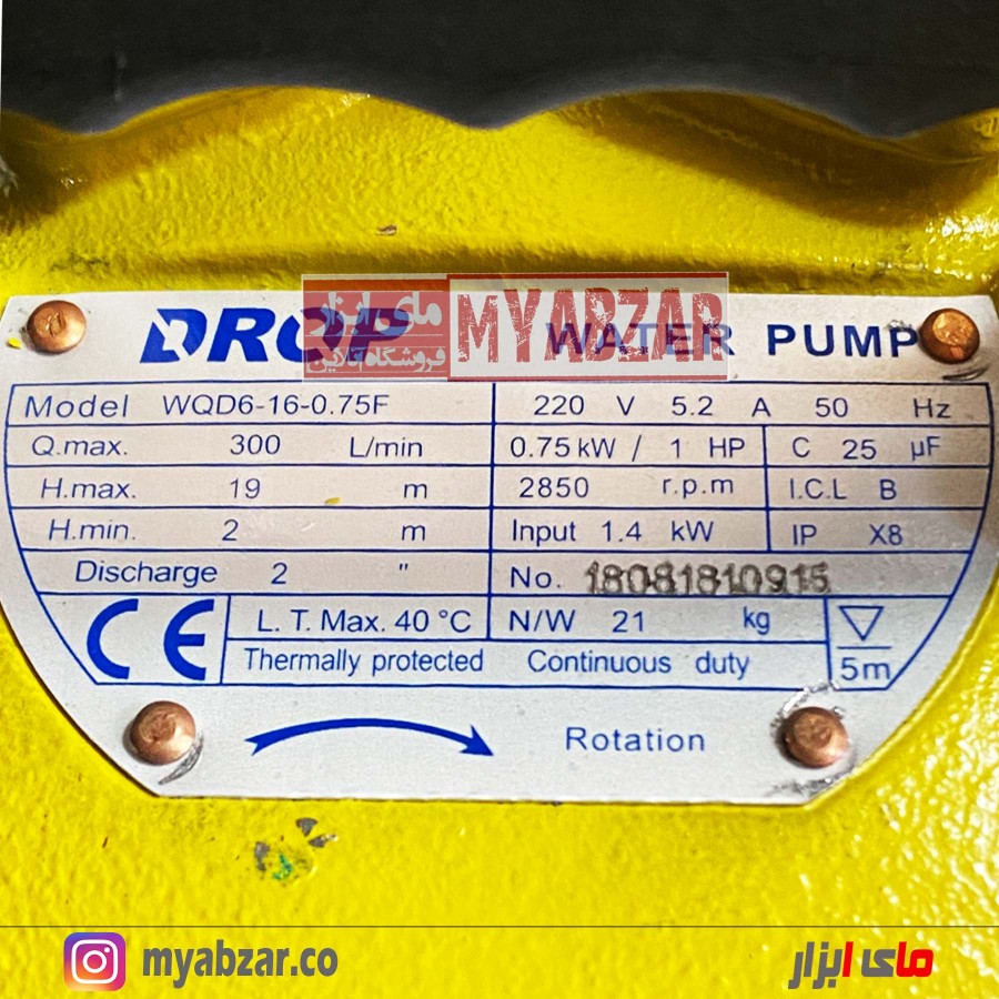 پمپ لجن کش 16 متری 2 اینچ دراپ مدل DROP WQD6-16-0.75F
