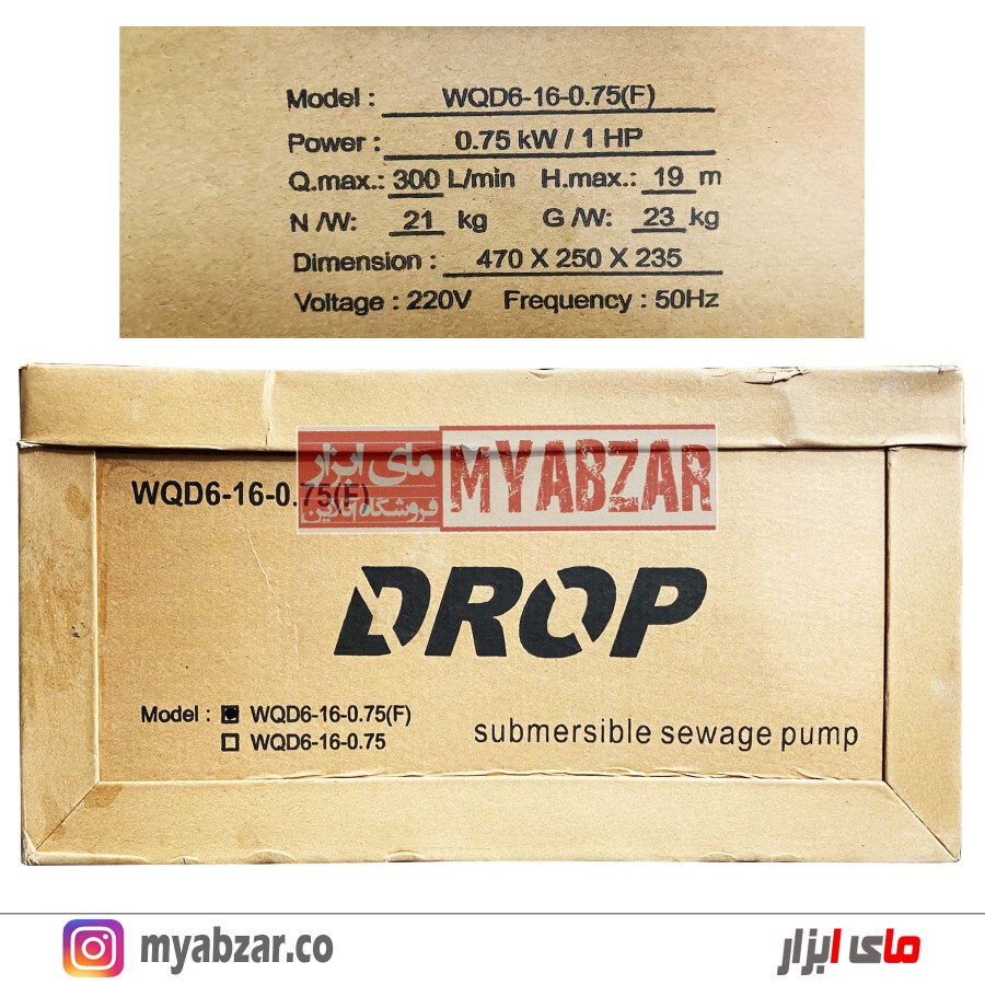 مدل | پمپ لجن کش 16 متری 2 اینچ دراپ مدل DROP WQD6-16-0.75F |