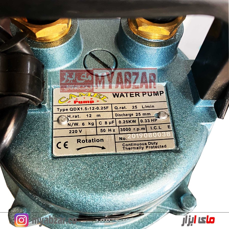 پمپ کفکش 12 متری 1 اینچ کمل مدل CAMEL QDX1.5-12-0.25F مناسب چاه های اب صاف و متراژ 1 الی 10 متر میباشد.
