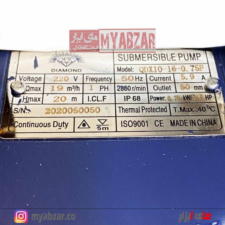 کفکش 16 متری 2 اینچ دیاموند مدل DIAMOND QDX10-16-0.75F مناسب چاه های اب صاف و متراژ 1 الی 15 متر میباشد.