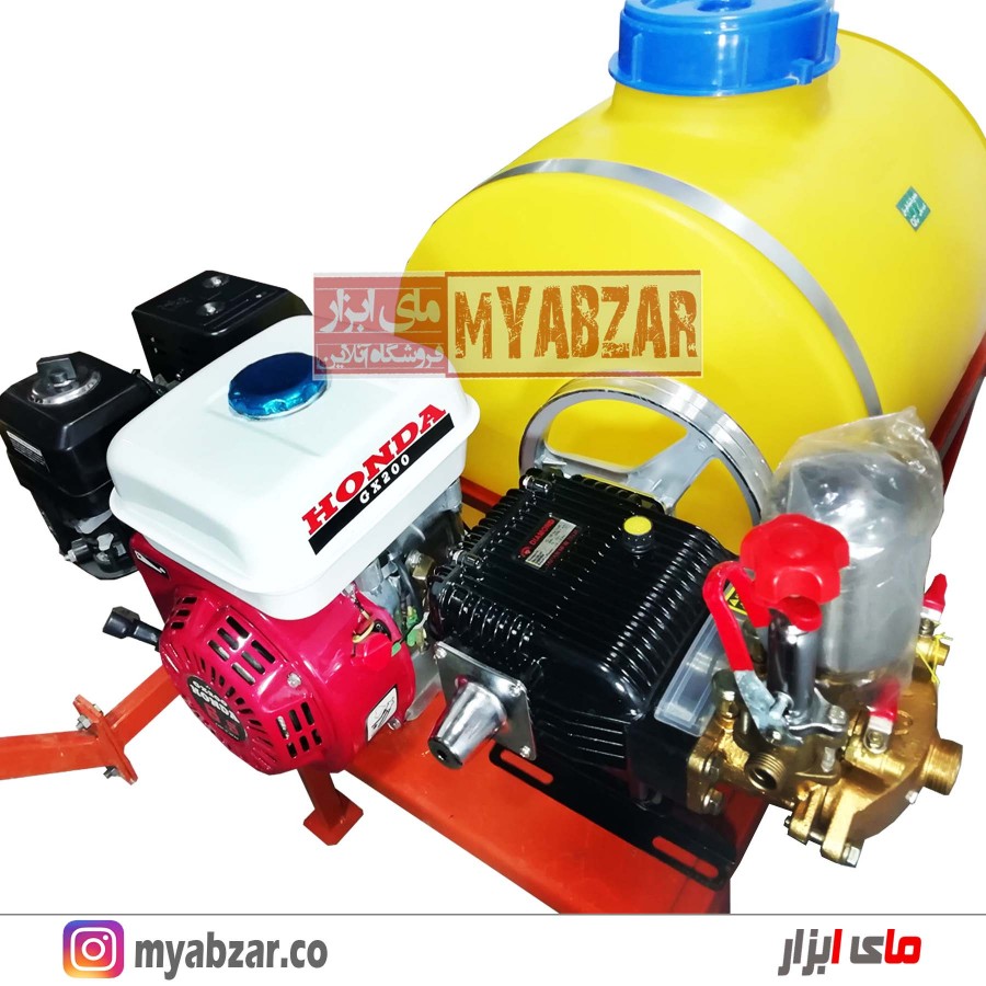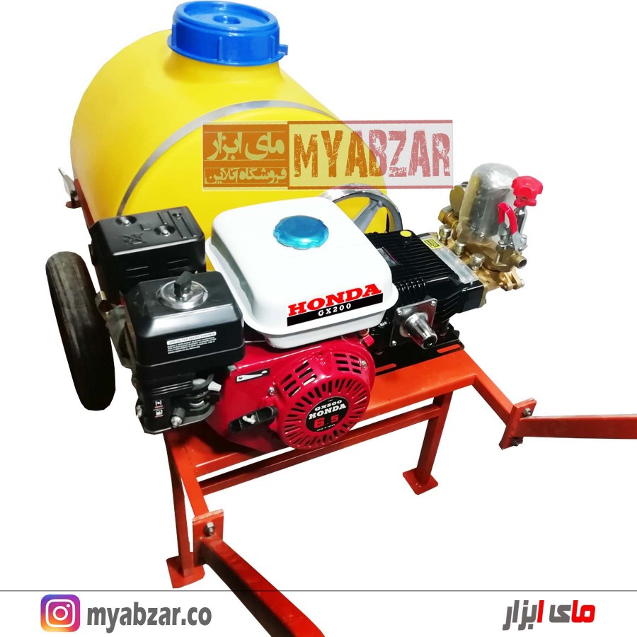 سمپاش 100 لیتری موتور هوندا GX200 اصلی با پمپ 45 بار مشکی طرح رینو پاور