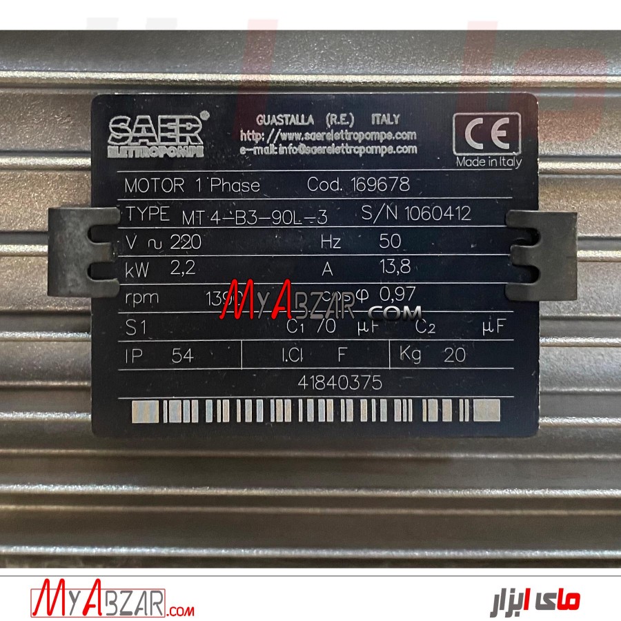 الکتروموتور تکفاز آلومینیومی 1500 دور SAER 2.2kw