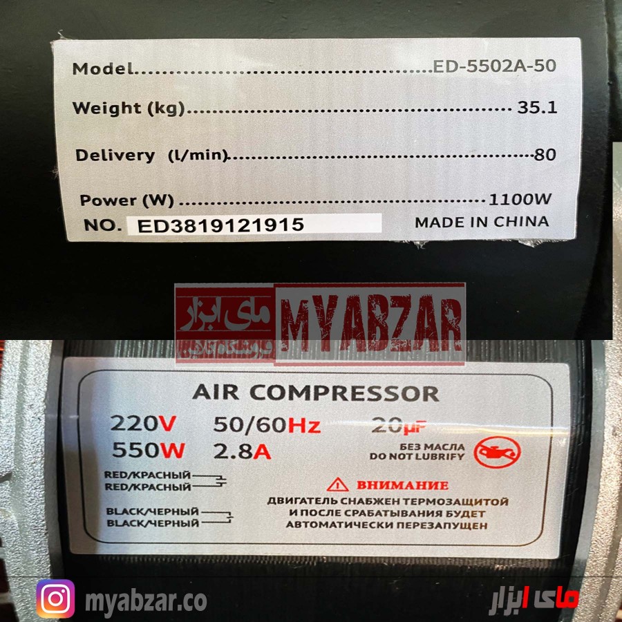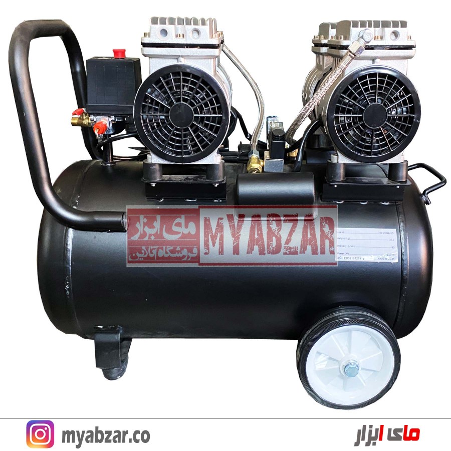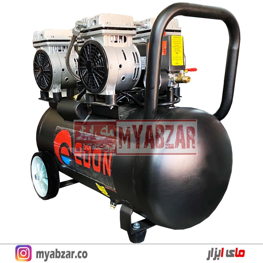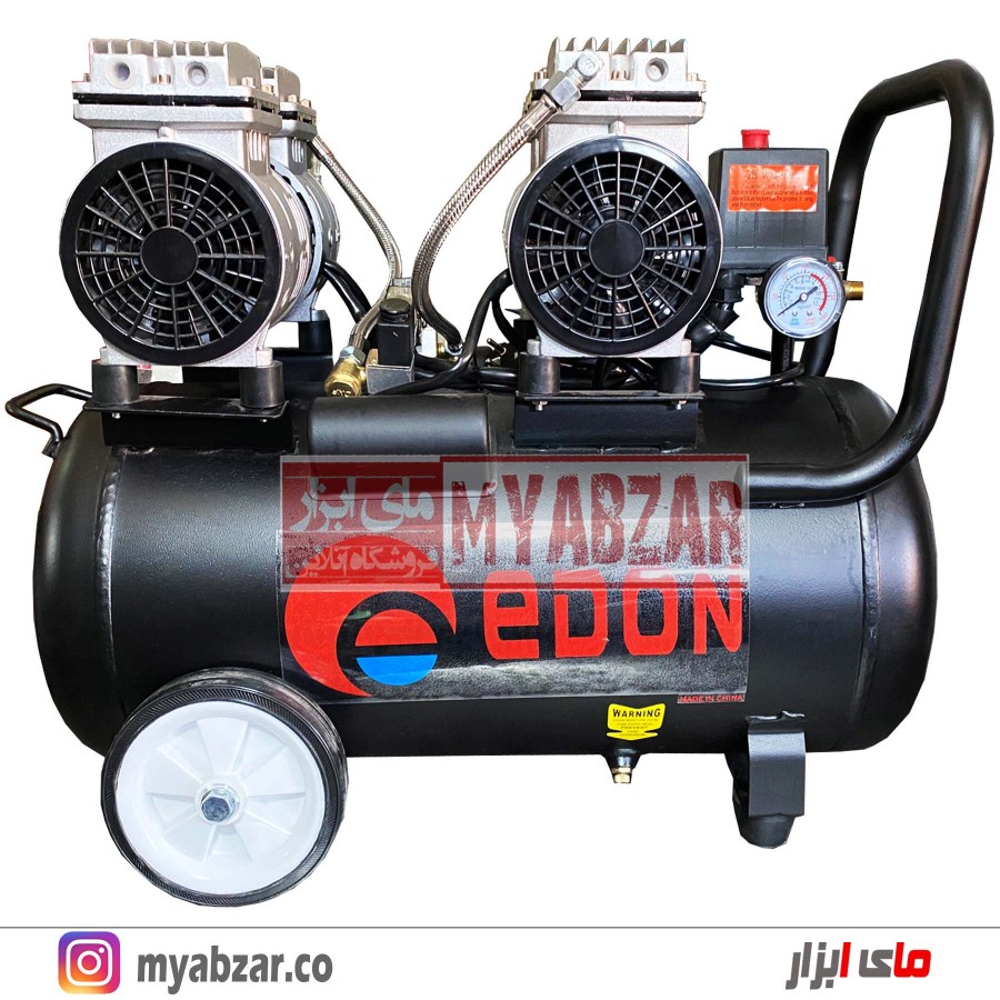 محصولی که مشاهده میکنید کمپرسور هوای 2 موتوره سایلنت (ED5502A-50L) از تولیدات شرکت ابزارسازی «ادون » (EDON) است. این مدل با حجم مخزن 50 لیتر از سری کمپرسورهای سایلنت این شرکت محسوب میشود. انرژی مورد نیاز این کمپرسور از طریق برق 220 ولت شهری تامین میشود. همچنین ساختار موتور این کمپرسور طوری طراحی شده که برای کارکرد نیاز به روغن ندارد.
