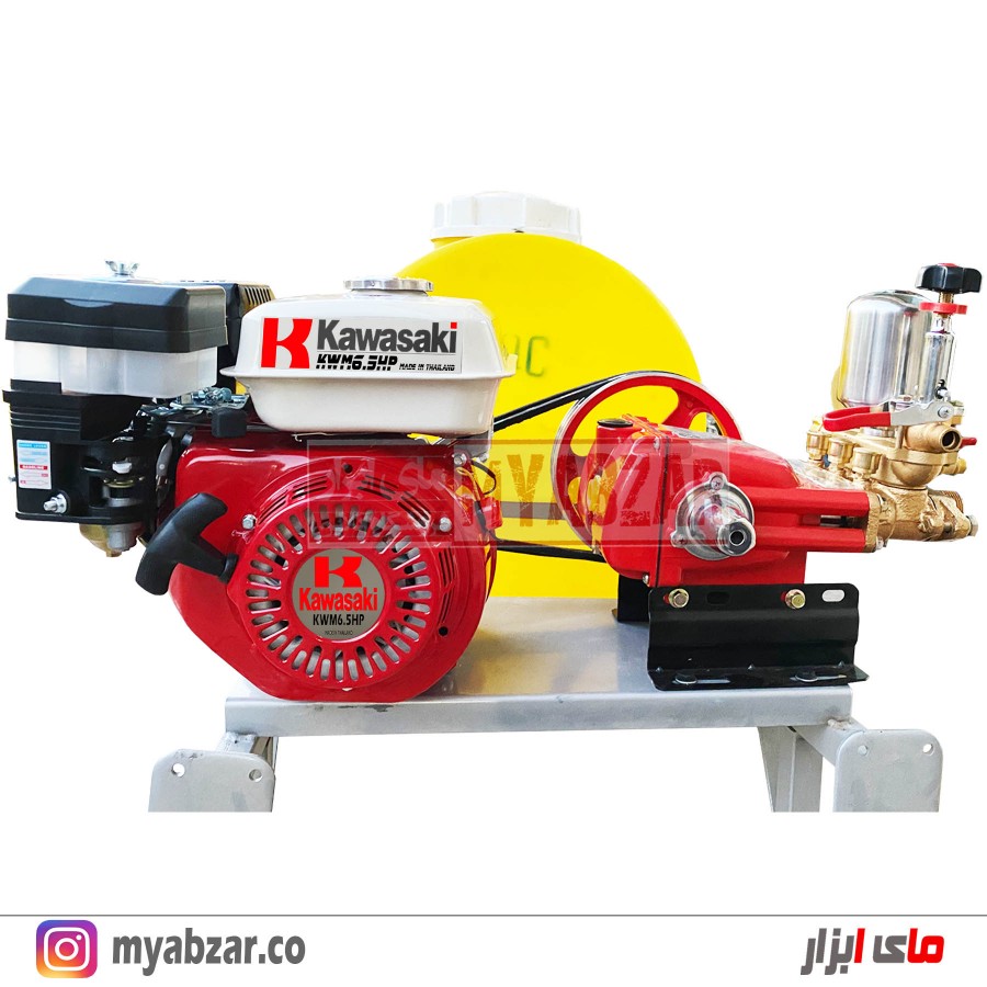 مشخصات سمپاش فرغونی 200 لیتری موتور 6.5 اسب kawasaki اصلی مدل KWM6.5HP و پمپ 55 بار
