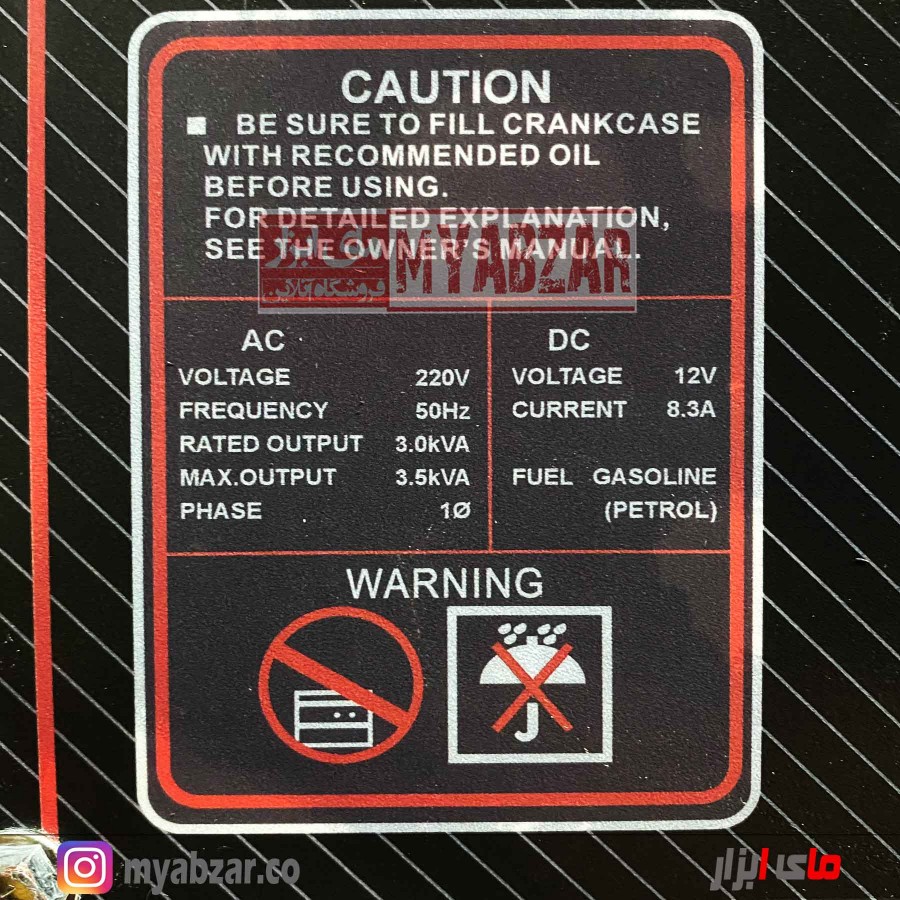 مجهز به | - سیستم هشدار کمبود روغن - سیستم AVR جهت یکسان سازی ولتاژ خروجی - سیستم قطع کننده مدار از کنترل پنل |