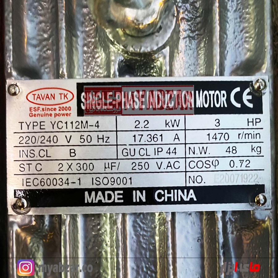 قدرت موتور : 3 اسب بخار - 2.2 کیلووات