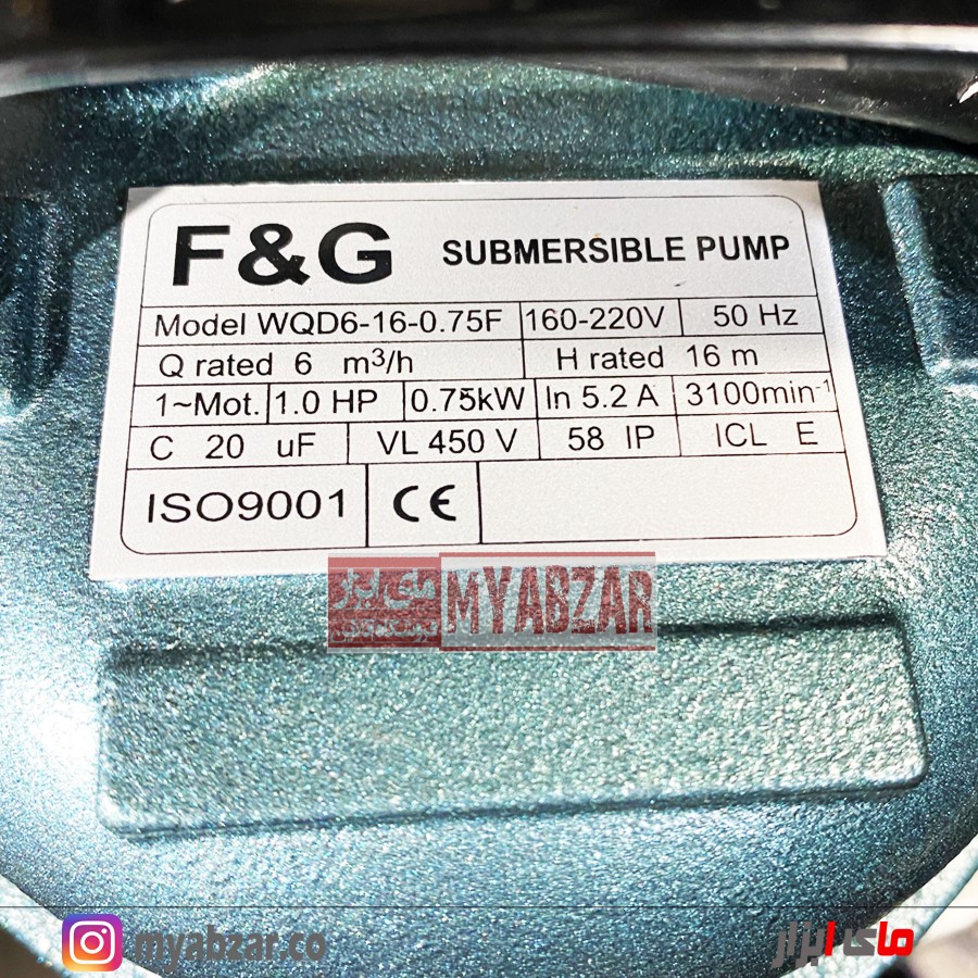 مدل | پمپ لجن کش 16 متری 2 اینچ مدل F&G WQD6-16-0.75F |