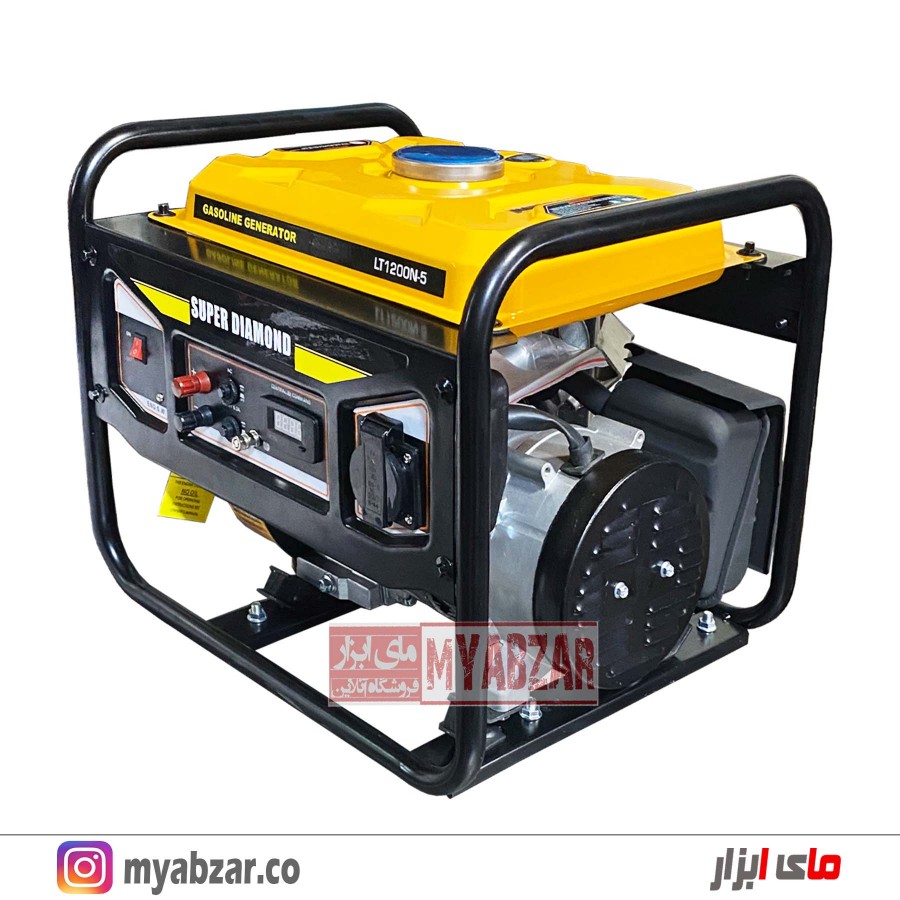 موتور برق 1000 وات دیاموند مدل SUPER DIAMOND LT1200N-5 , از نوع موتور هواخنک, چهازمانه و تکفاز میباشد. نوع سوخت قابل استفاده بنزین است. فرکانس 50 هرتز است. دارای موتور قدرتمند به توان 2.9 اسب است که در حالت اوج به خروجی برق 1100 وات میرسد.