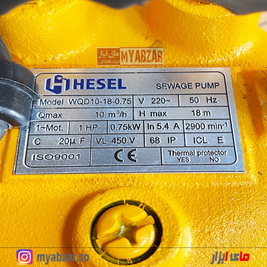 پمپ لجن کش 18 متری 2 اینچ هسل مدل HESEL WQD10-18-0.75