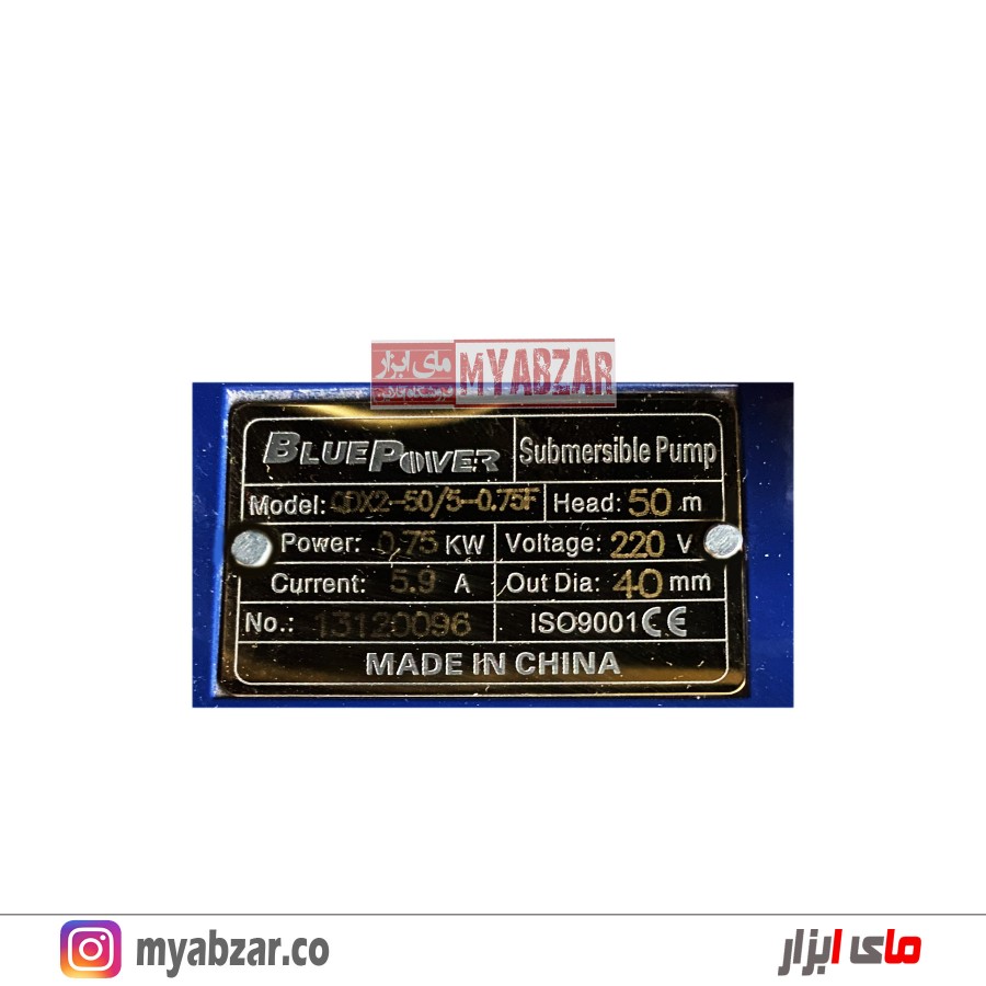 کفکش 50 متری 1 اینچ بلو پاور مدل BLUE POWER QDX2-50/5- مناسب چاه های اب صاف و متراژ 25 الی 45 متر میباشد.