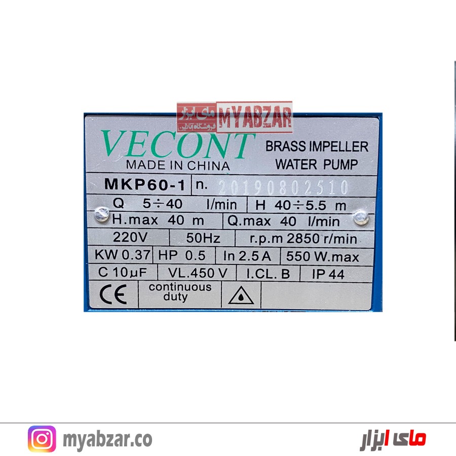 موتور پمپ آب خانگی ویکانت مدل VECONT MKP60-1