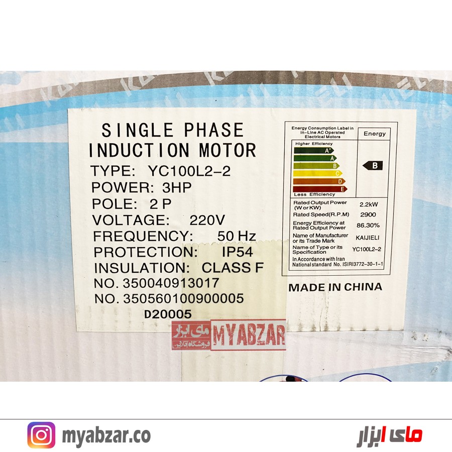 الکتروموتور کاجیلی 3 اسب 3000 دور تکفاز Kaijieli