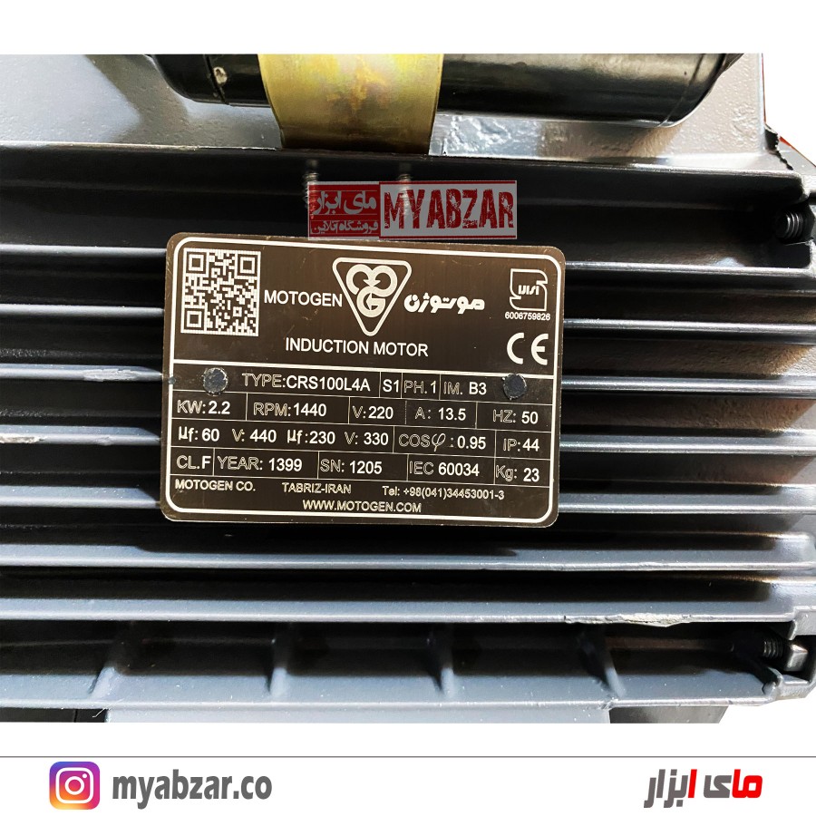 الکتروموتور تکفاز موتوژن پوسته آلومینیوم 1500 دور 2.2 MOTOGEN kw