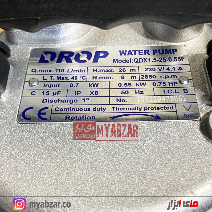 کفکش 25 متری 1 اینچ دراپ مدل DROP QDX1.5-25-0.55F مناسب چاه های اب صاف و متراژ 8 الی 25 متر میباشد.