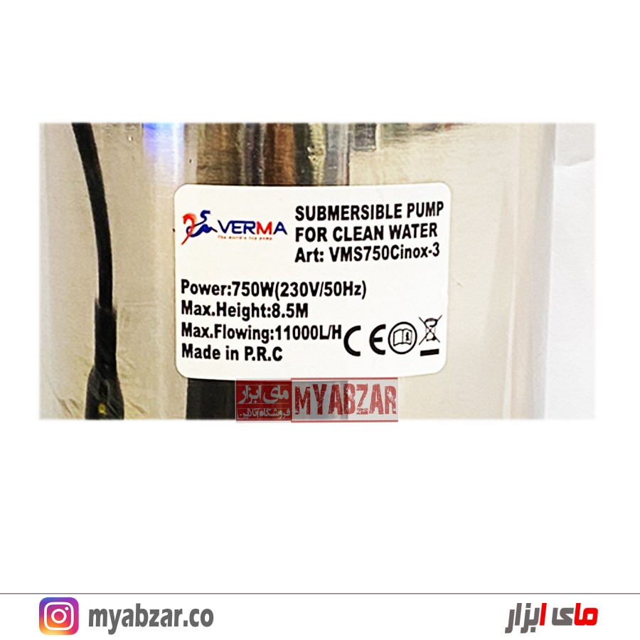 پمپ کفکش بدنه استیل ورما 8.5 متری مدل VERMA VMS750