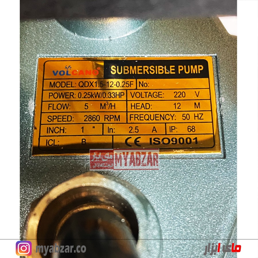 مدل | پمپ کفکش والکانو 12 متری 1 اینچ مدل VOLCANO QDX1.5-12-0.25F |