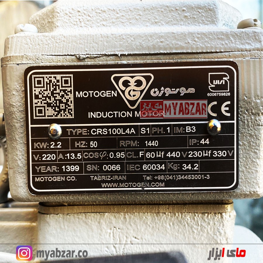 الکتروموتور موتوژن تبریز 3 اسب 2.2 کیلووات 1500 دور تکفاز MOTOGEN جنس بدنه این محصول از چدنی میباشد که از مقاومت بالای برخوردار است و همچنین وزن الکتروموتور موتوژن 3 اسب به 34 کیلوگرم میرسد.