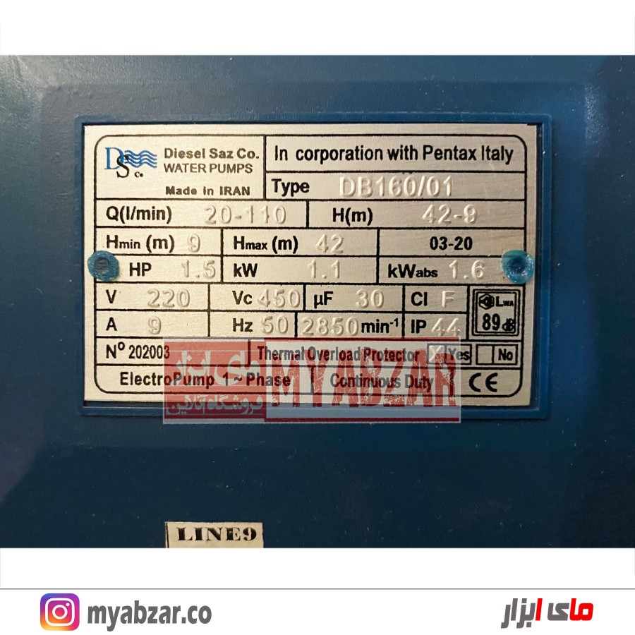 ویژگی های پمپ آب 1.5 اسب 2 پروانه دیزل ساز مدل DB160/01