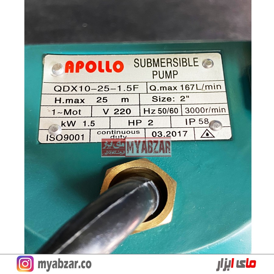 کفکش 25 متری 2 اینچ آپولو مدل APOLLO QDX10-25-1.5F مناسب چاه های اب صاف و متراژ 10 الی 22 متر میباشد. این کفکش مجهز به فلوتر میباشد(قطع کن در مواقع بی آبی)
