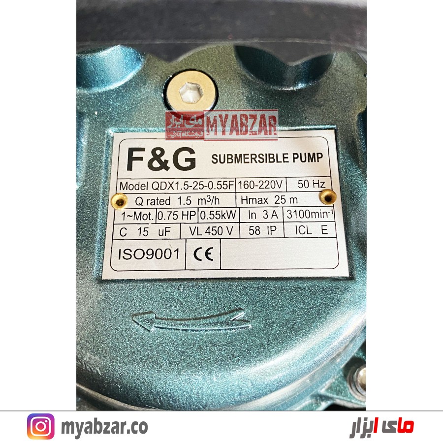 کفکش 25 متری 1 اینچ F&G مدل QDX1.5-25-0.55F مناسب چاه های اب صاف و متراژ 15 الی 25 متر میباشد.