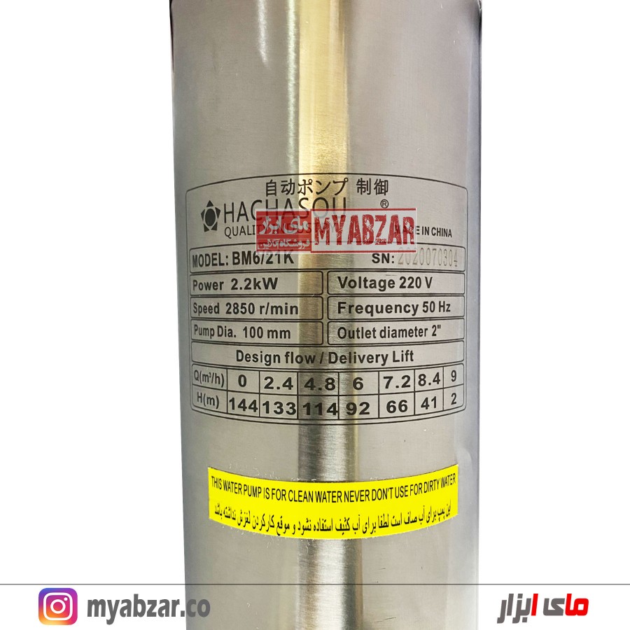پمپ شناور هاچاسو 133 متری 2 اینچ تکفاز HACHASOU مناسب چاه های اب صاف و متراژ 40 الی 140 متر میباشد.