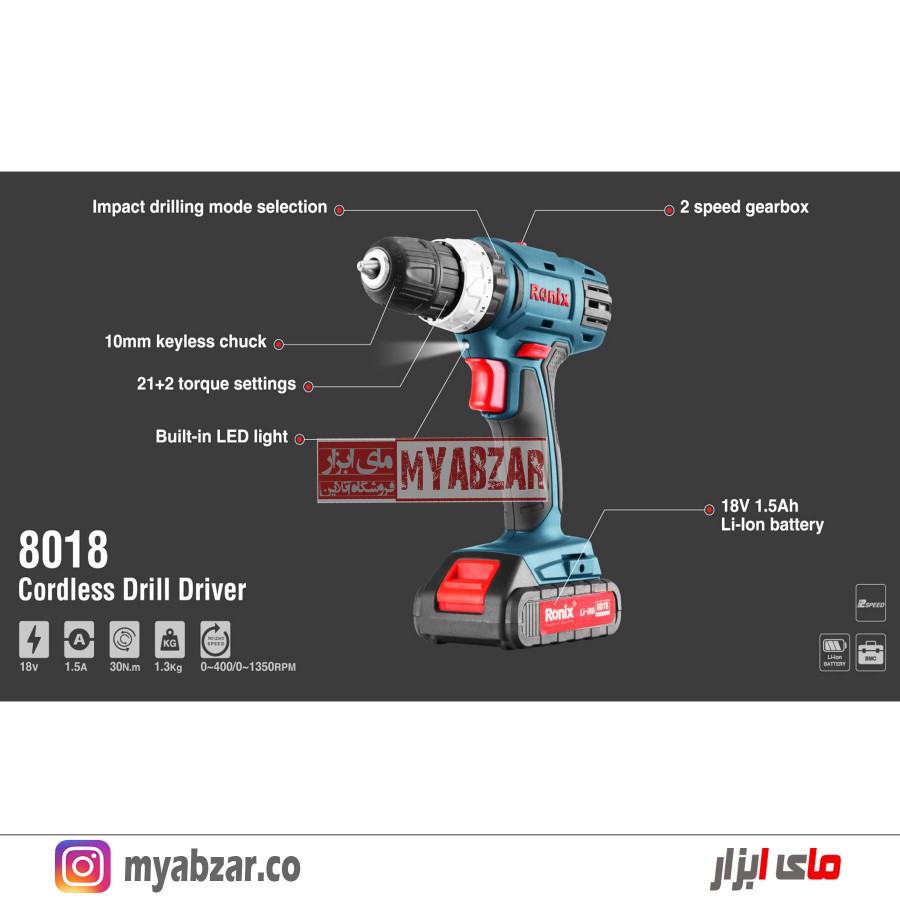 مشخصات دریل شارژی رونیکس مدل RONIX 8018