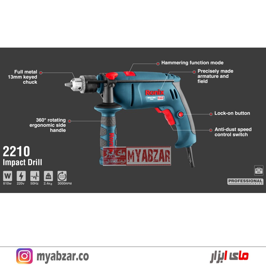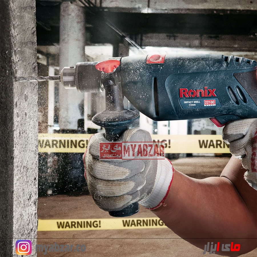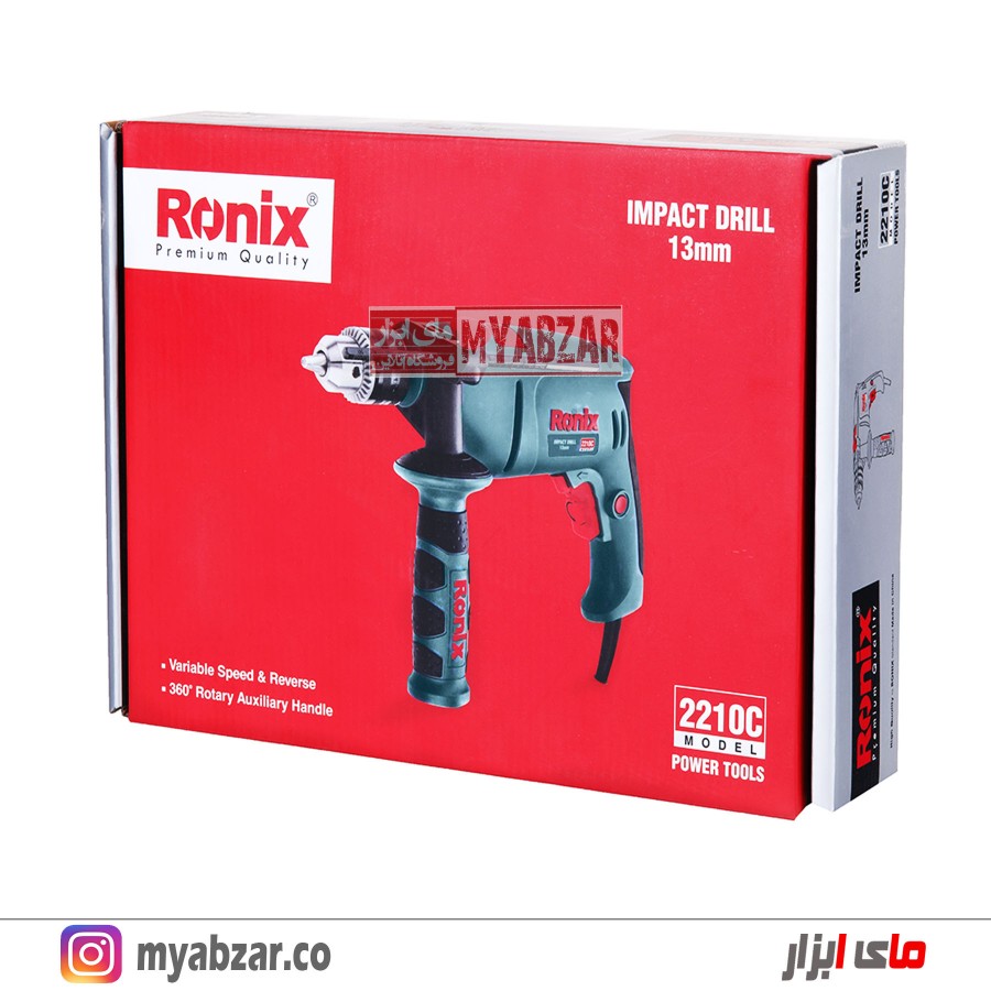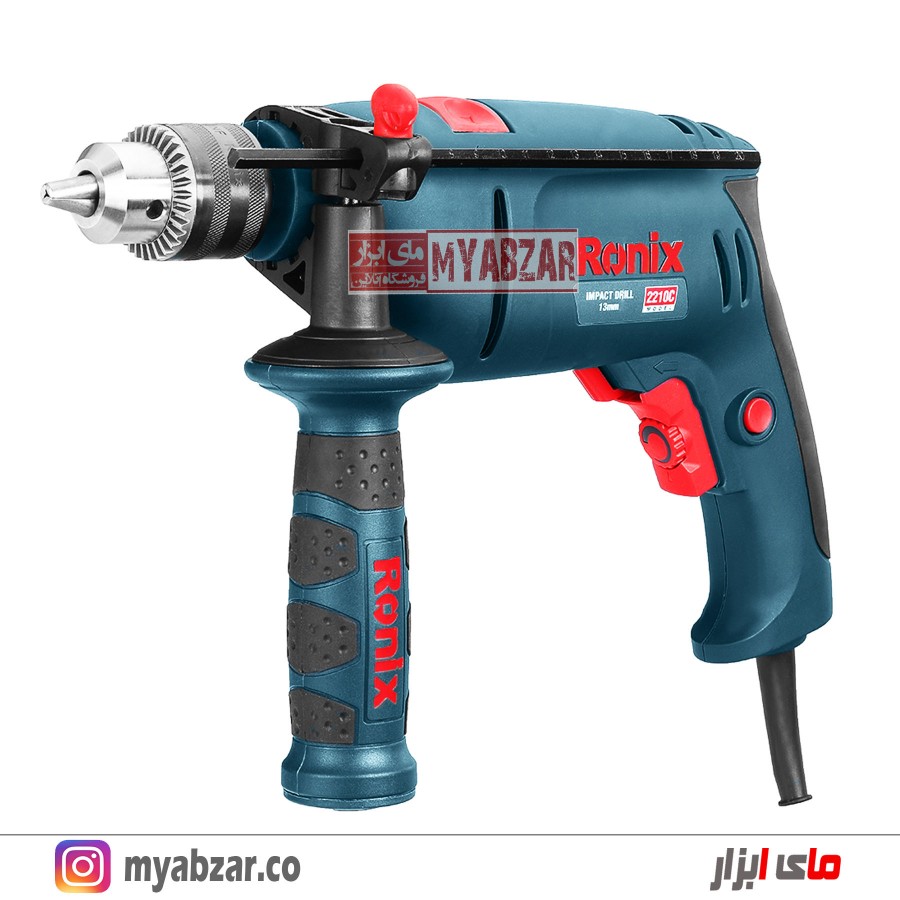 دریل چکشی رونیکس مدل 2210C یک دریل دو حالته بوده که توسط شرکت رونیکس طراحی و تولید شده است. این دریل ضربه ای علاوه بر سوراخ کاری اجسام قابلیت ضربه وارد کردن به جسم را نیز دارد. دریل چکشی علاوه بر حرکت دورانی که دارد می تواند حتی به حالت عمودی بر سطح کار ضربات بیشتری وارد می کند و پیشروی را برای ادامه فعالیت با سرعت بیشتر و راحت تر انجام می دهد.
