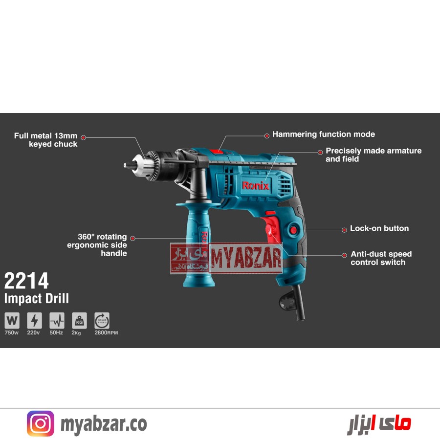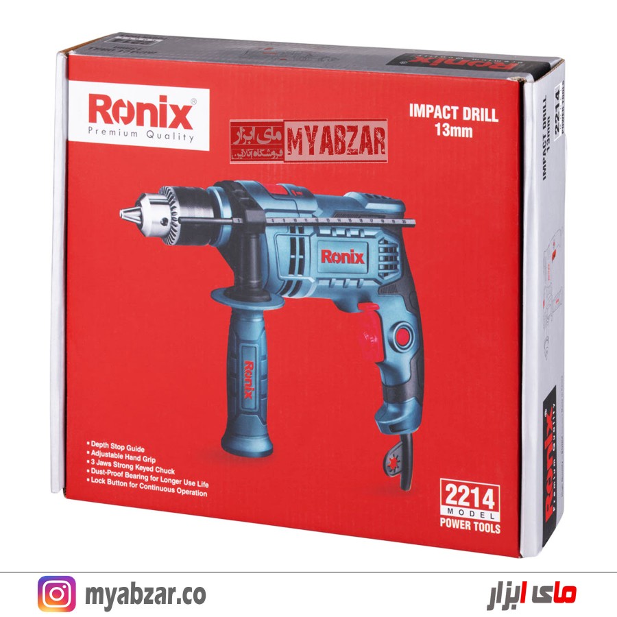 دریل چکشی رونیکس مدل 2214 یک دریل دو حالته بوده که توسط شرکت رونیکس طراحی و تولید شده است. این دریل ضربه ای علاوه بر سوراخ کاری اجسام قابلیت ضربه وارد کردن به جسم را نیز دارد. دریل چکشی علاوه بر حرکت دورانی که دارد می تواند حتی به حالت عمودی بر سطح کار ضربات بیشتری وارد می کند و پیشروی را برای ادامه فعالیت با سرعت بیشتر و راحت تر انجام می دهد.