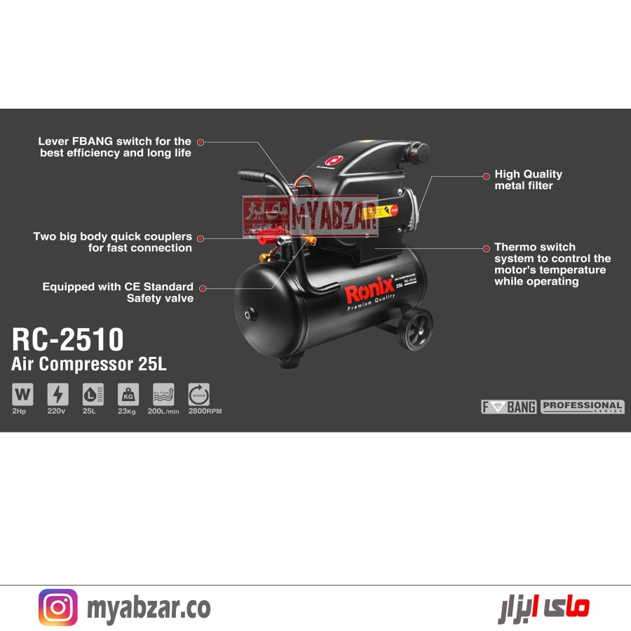 ویژگی های خاص کمپرسور 25 لیتری Ronix RC-2510