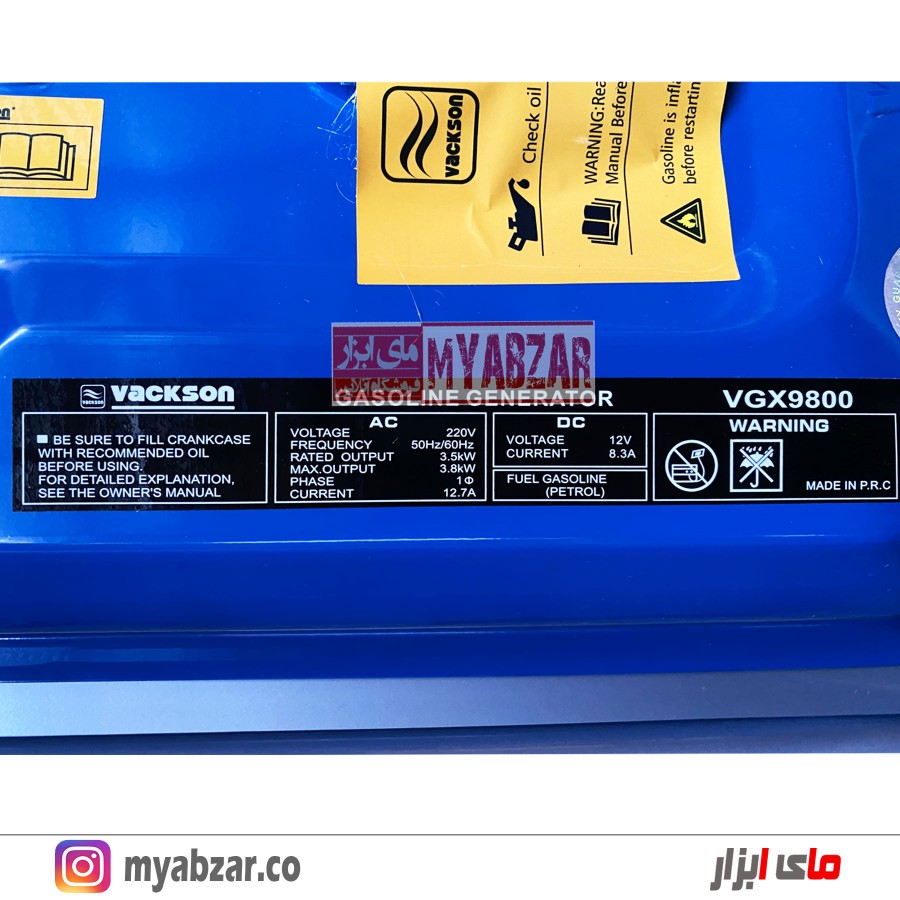 برند و مدل | موتور برق واکسون 3800 وات مدل VACKSON VGX9800 |
