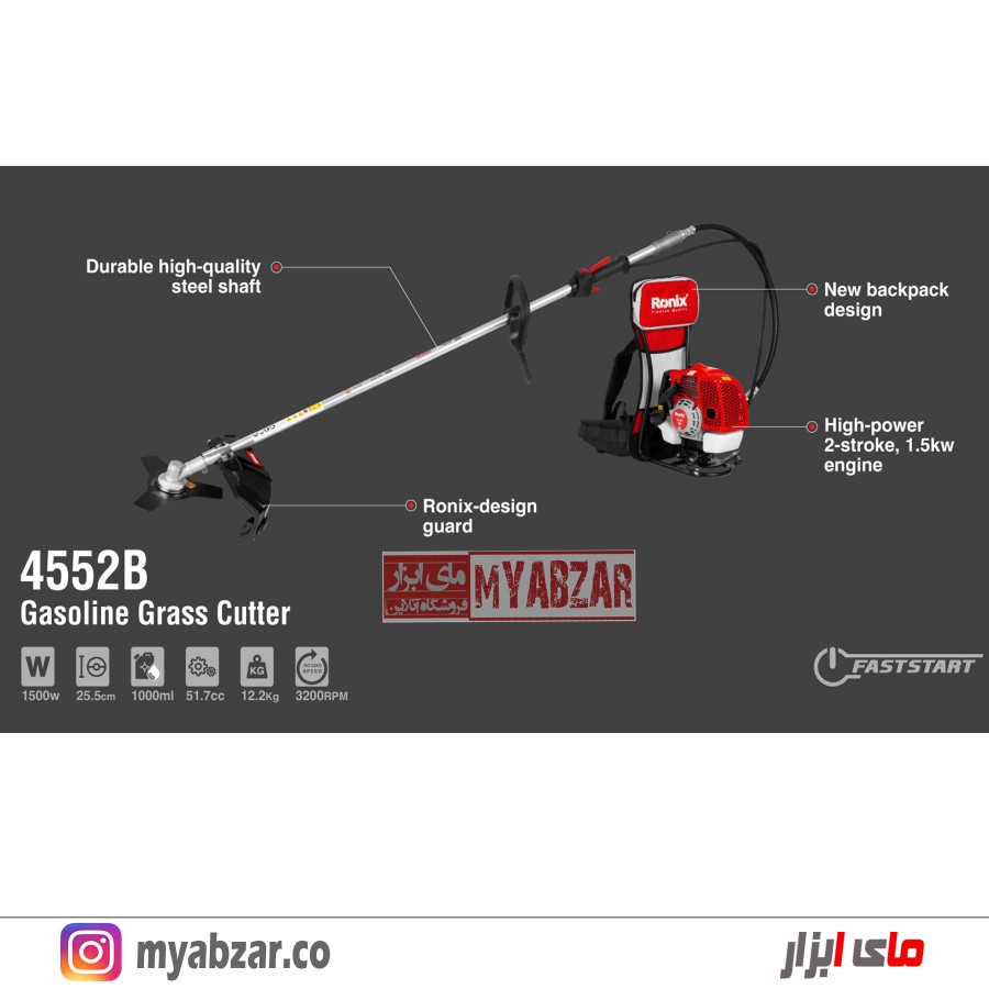 علف زن پشتی رونیکس مدل 4552B با کیفیت بالا و موتور قدرتمند 2 زمانه