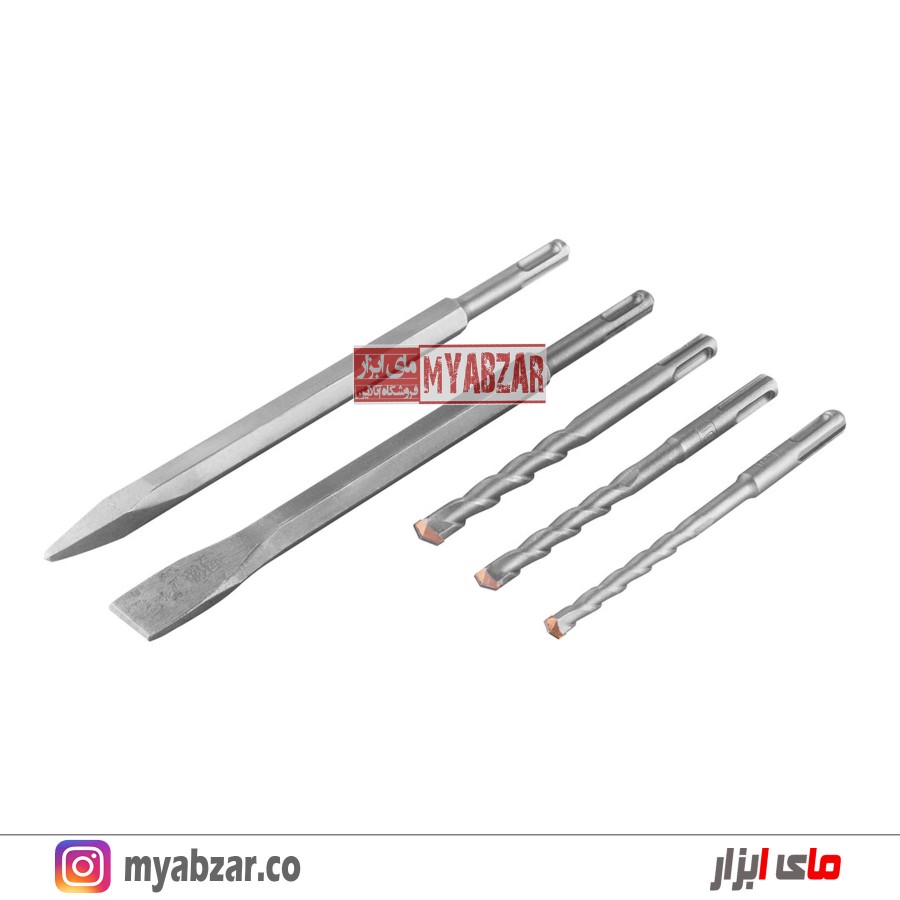 متعلقات | ظرف گریس، آچار، میله تنظیم عمق، دسته جانبی طراحی شده توسط رونیکس و کیف حامل متهها شامل: یک مته SDS-PLUS 8x150 یک مته SDS-PLUS 10x150 یک مته SDS-PLUS 12x150 یک مته نوک تیز SDS-PLUS 14x250 یک مته نوک تخت SDS-PLUS 14x250 |