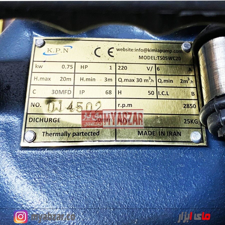 مدل | پمپ لجن کش 20 متری 2 اینچ کیمیا پمپ مدل KPN T50SWC20 |