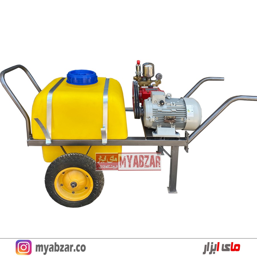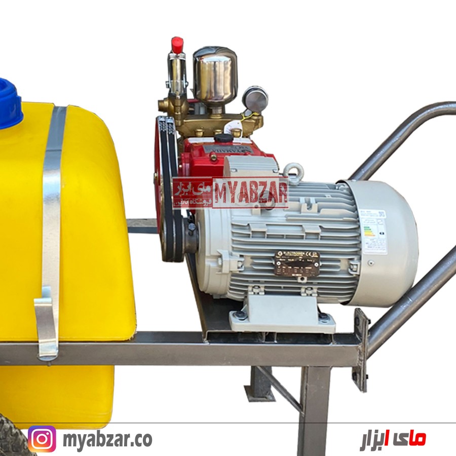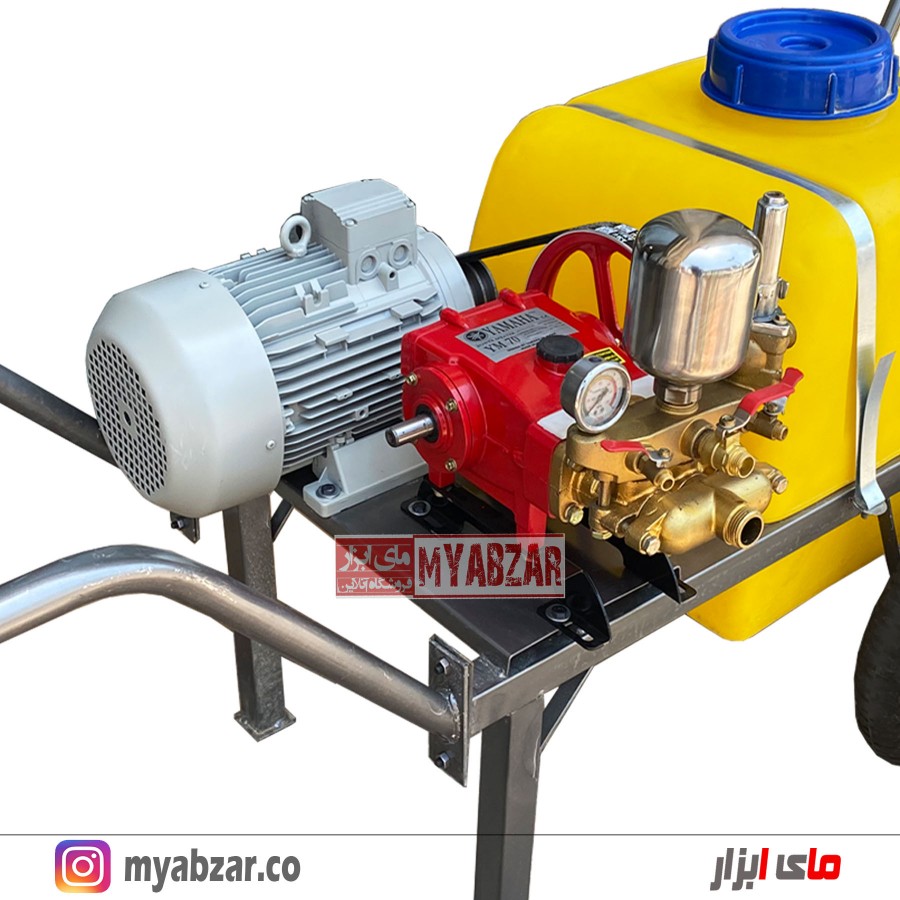 سمپاش 100 لیتری برقی 4 کیلووات و پمپ 70 بار یاماها تایوان.این دستگاه با الکتروموتور 5.5 اسب 1500 دور الکتروژن و پمپ 70 بار YAMAHA YM70 ساخت تایوان بروی شاسی مقاوم و مستحکم نصب شده است.