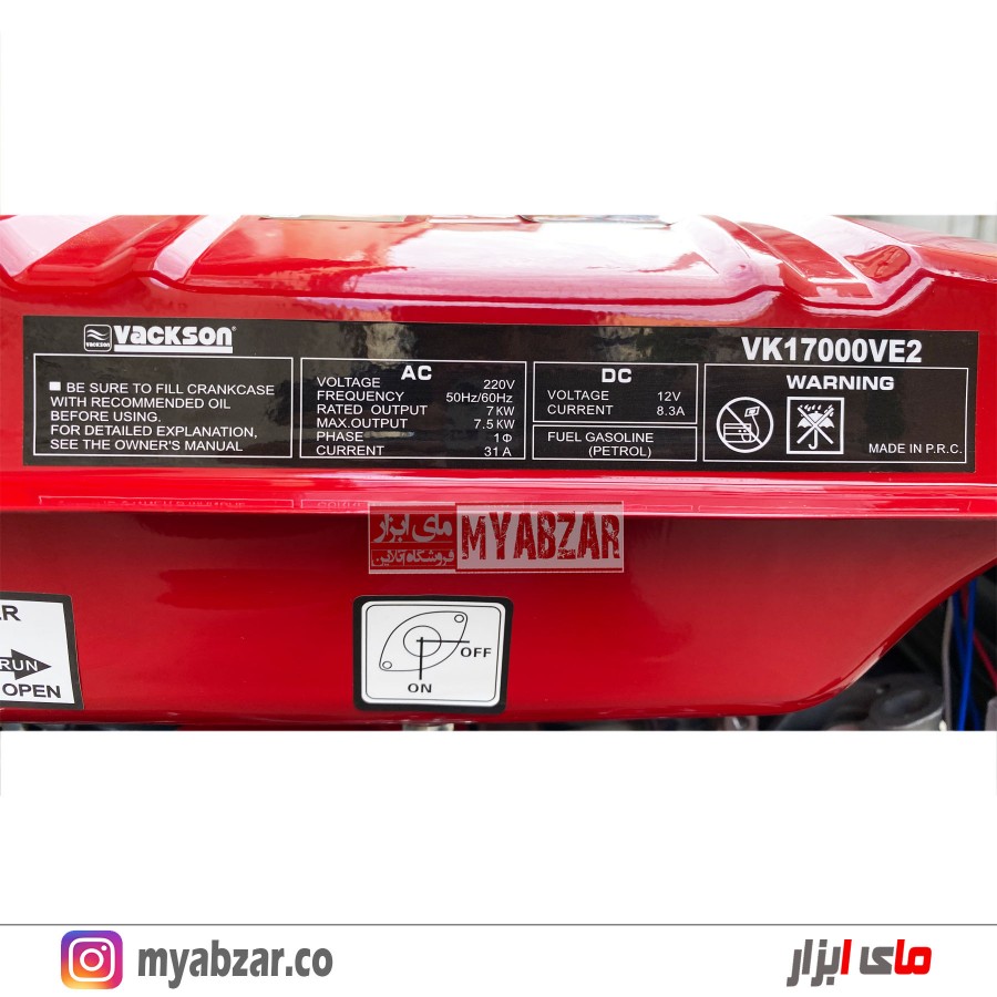 برند و مدل | موتور برق واکسون 7/5 کیلووات مدل VACKSON VK17000VE2 |