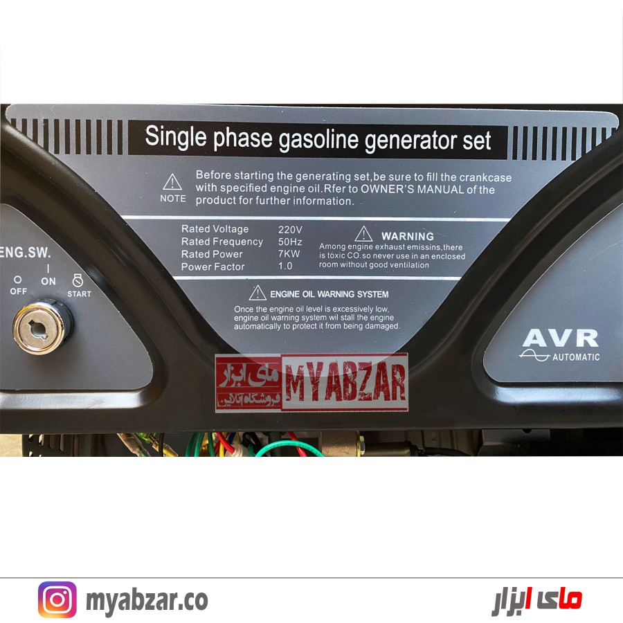 مجهز به | - سیستم هشدار کمبود روغن - سیستم AVR جهت یکسان سازی ولتاژ خروجی - سیستم قطع کننده مدار از کنترل پنل |