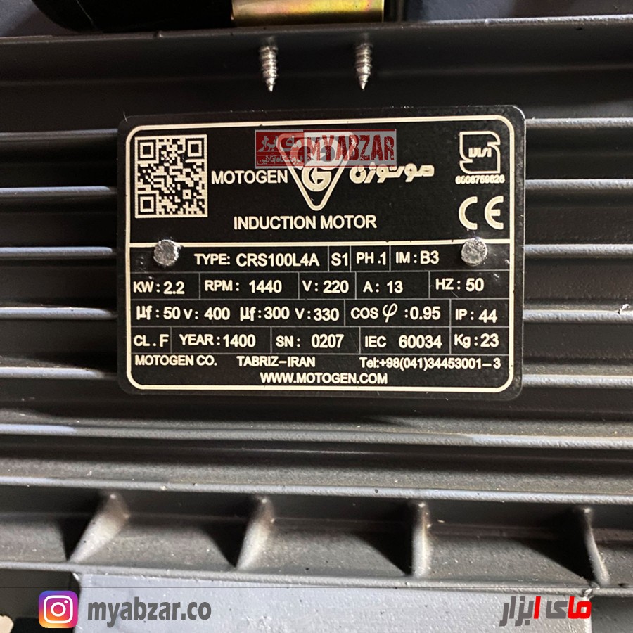 الکتروموتور تکفاز موتوژن پوسته آلومینیوم 1500 دور 2.2 MOTOGEN kw