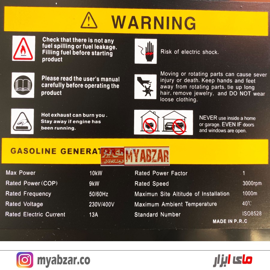 مجهز به | - سیستم هشدار کمبود روغن - سیستم AVR جهت یکسان سازی ولتاژ خروجی - سیستم قطع کننده مدار از کنترل پنل |