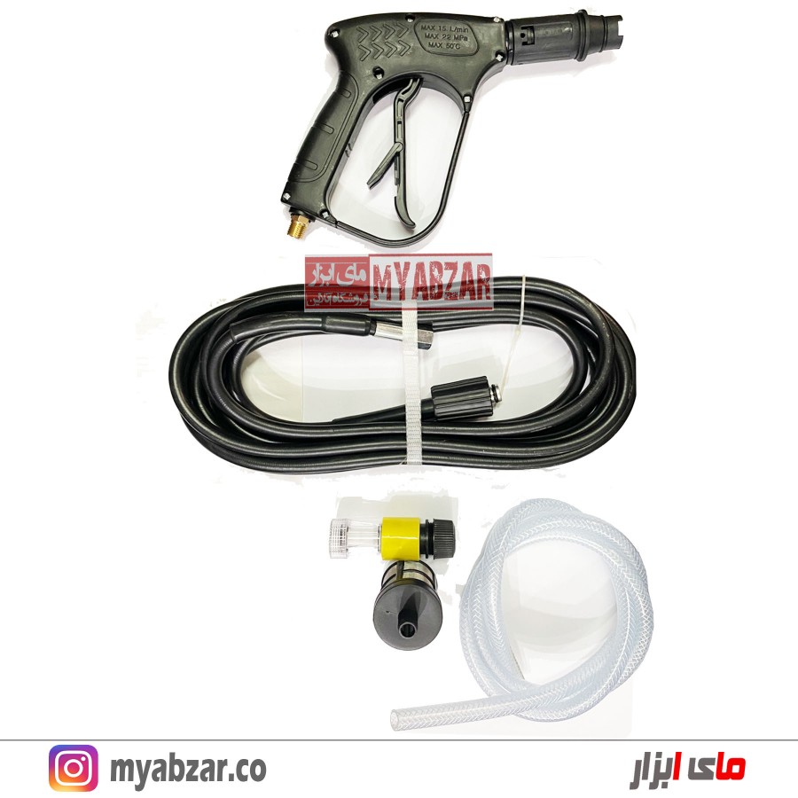 توضیحات | شاسی مقاوم دارای کلید خاموش و روشن صنعتی دارای شیلنگ 6 متری با اتصالات دارای لانس قطع کن دار شیلنگ 2 متری مکش+صافی |