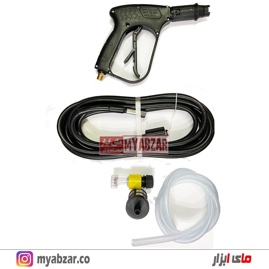 توضیحات | شاسی مقاوم دارای کلید خاموش و روشن صنعتی دارای شیلنگ 6 متری با اتصالات دارای لانس قطع کن دار شیلنگ 2 متری مکش+صافی |