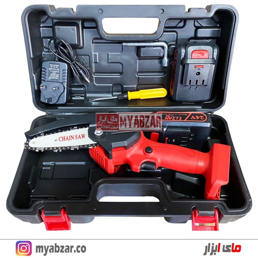 اره زنجیری شارژی تیتان مدل MCS-108 با باطری لیتیوم 24 ولت و گشتاور 30 نیوتن متر، مناسب برای برش و هرس شاخه ها میباشد.