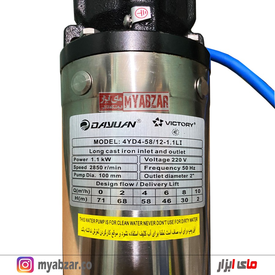 پمپ شناور ویکتوری 70 متری 2 اینچ تکفاز VICTORY مناسب چاه های اب صاف و متراژ 2 الی 70 متر میباشد.