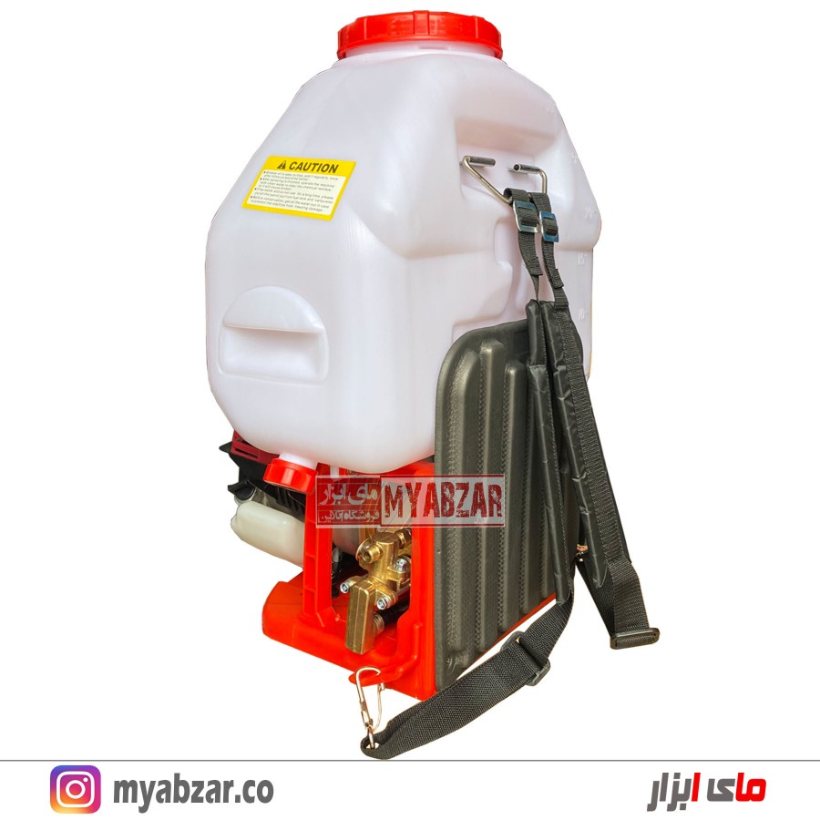 ظرفیت مخزن این سمپاش 25 لیتر می باشد. اما نیازی به پر کردن کامل مخزن نیست. هنگام پر کردن مخزن دقت نمایید مایع از طریق صافی قرار داده شده در روی درب مخزن عبور داده شود. این امر از ریخته شدن شاخ و برگ و … به مخزن و آسیب به پمپ دستگاه جلوگیری می کند.