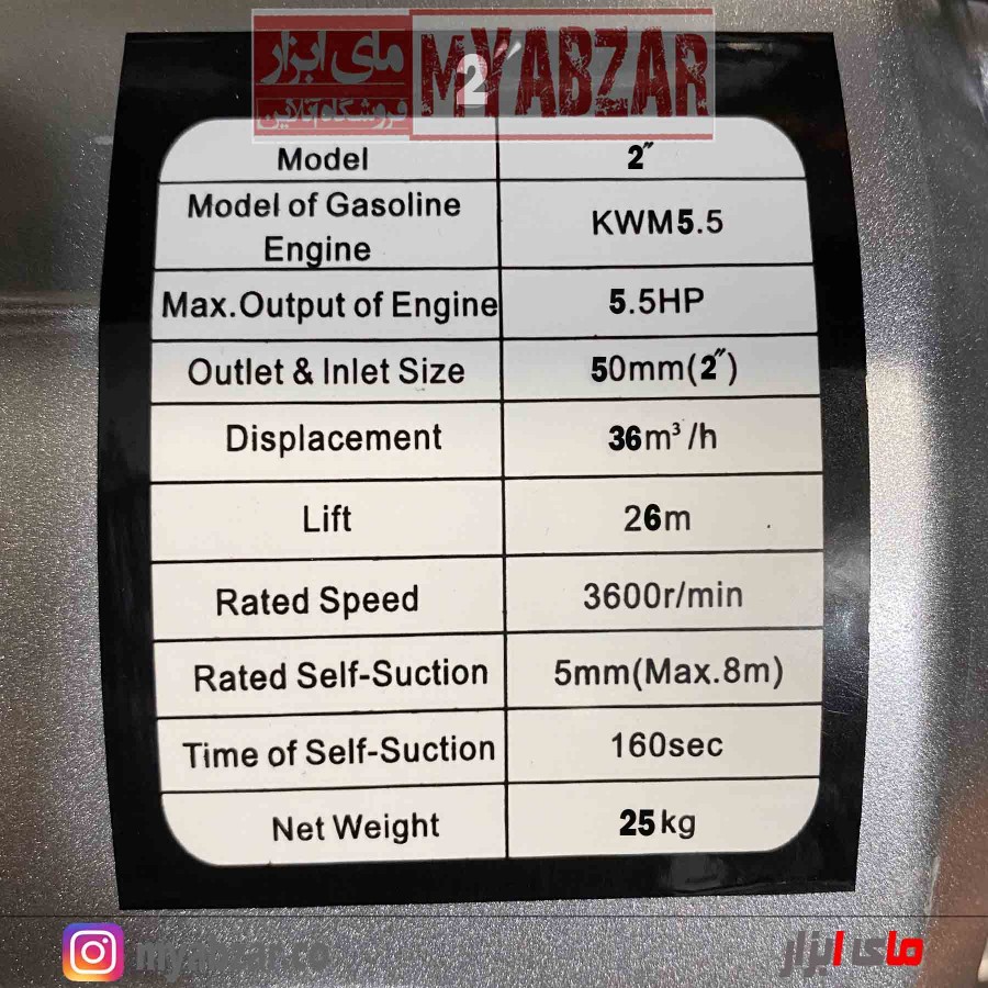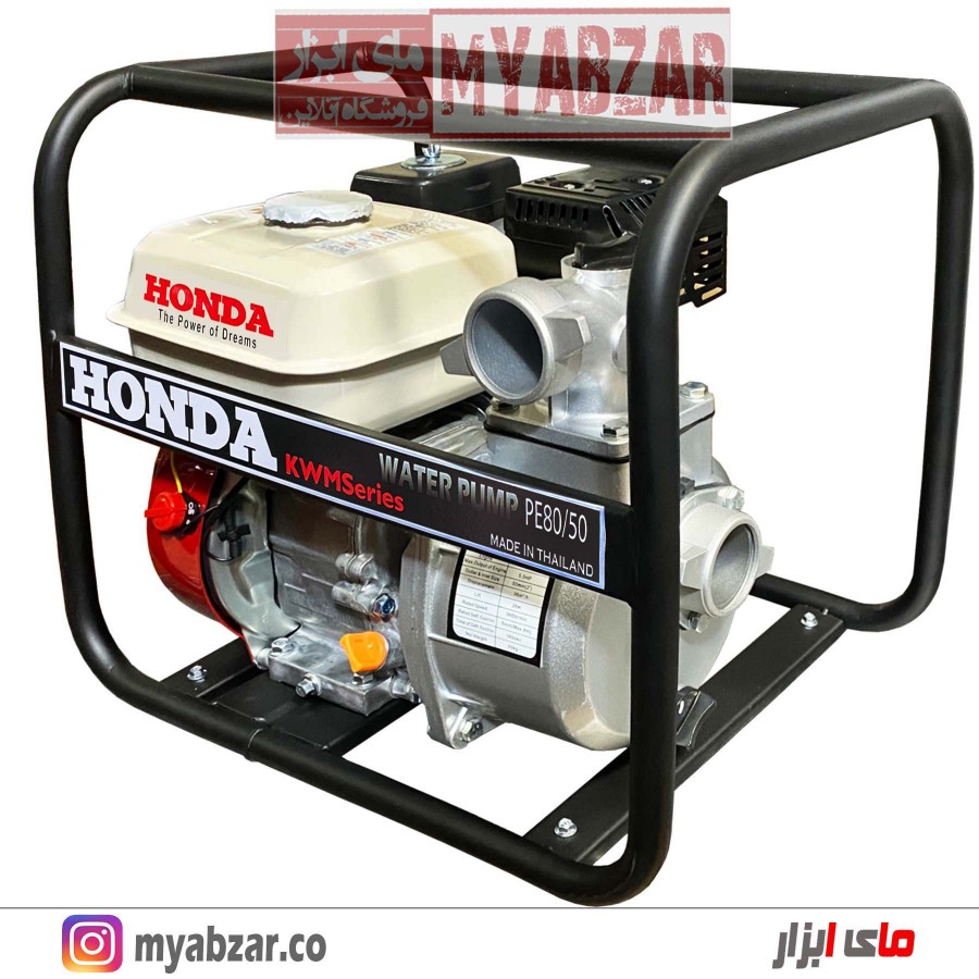 محصولی که اکنون مشاهده می کنید پمپ و موتور آن هر دو ساخته کمپانی هندا تایلند می باشند. مدل HONDA PE50 برای عملکرد از سوخت بنزین استفاده می کند و قطر دهانه ورودی و خروجی آن 2 اینچ می باشد همچنین این موتور پمپ می تواند آب را از ارتفاع 8 متر عمودی مکش کرده و تا ارتفاع مفید 26 متر عمودی یا 450 متر افقی ارسال نماید. این محصول تولید هوندا تایلند می باشد.